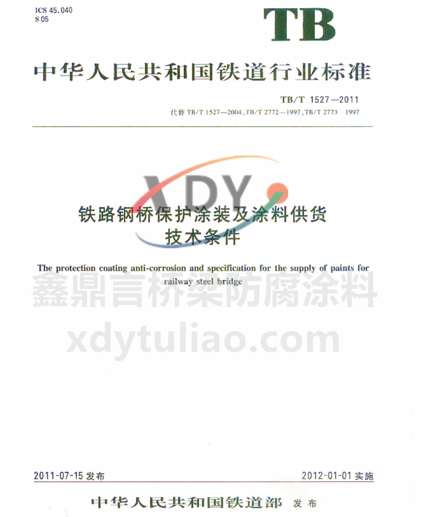 TB/T 1527-2011鐵路鋼橋保護涂裝及涂料供貨技術條件-石家莊博凱橋梁防腐涂料廠家