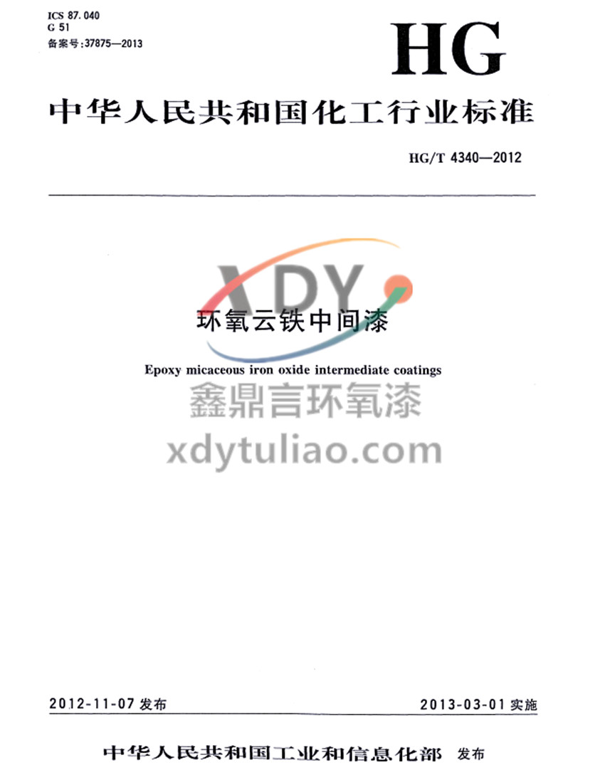 環氧云鐵中間漆化工行業標準HG/T 4340-2012