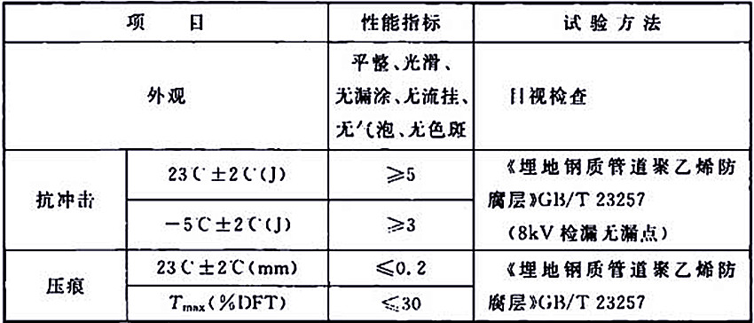 4.1 防腐補口工藝評定試驗(PQT)和施工前檢驗(PPT)應進行外觀、厚度、硬度、漏點及附著力檢查。