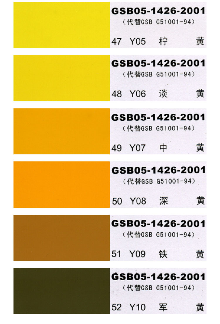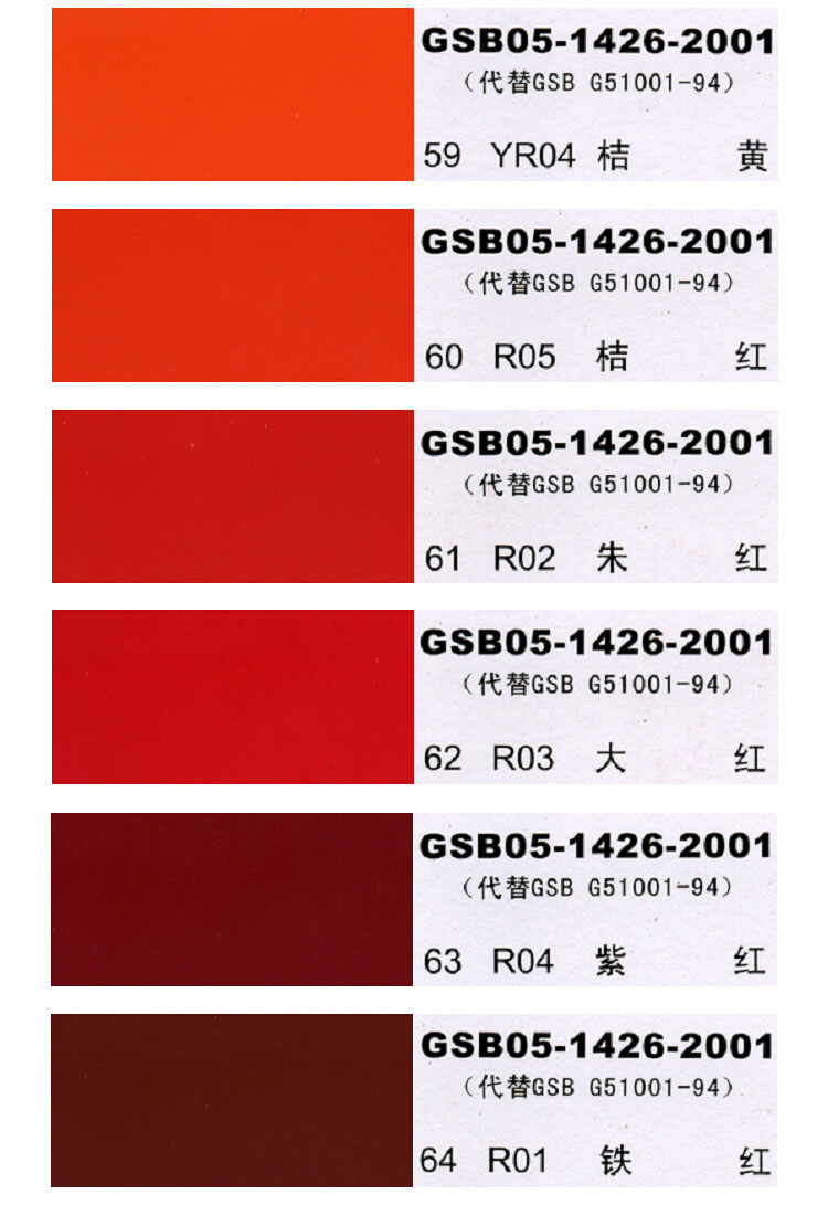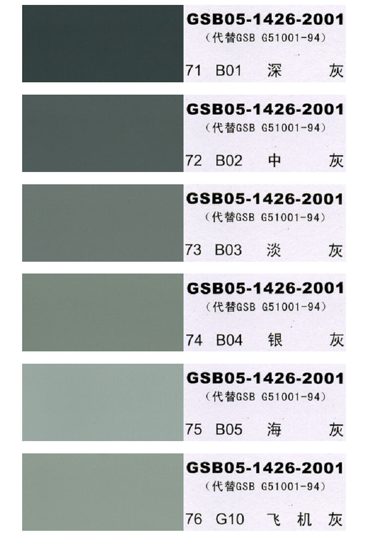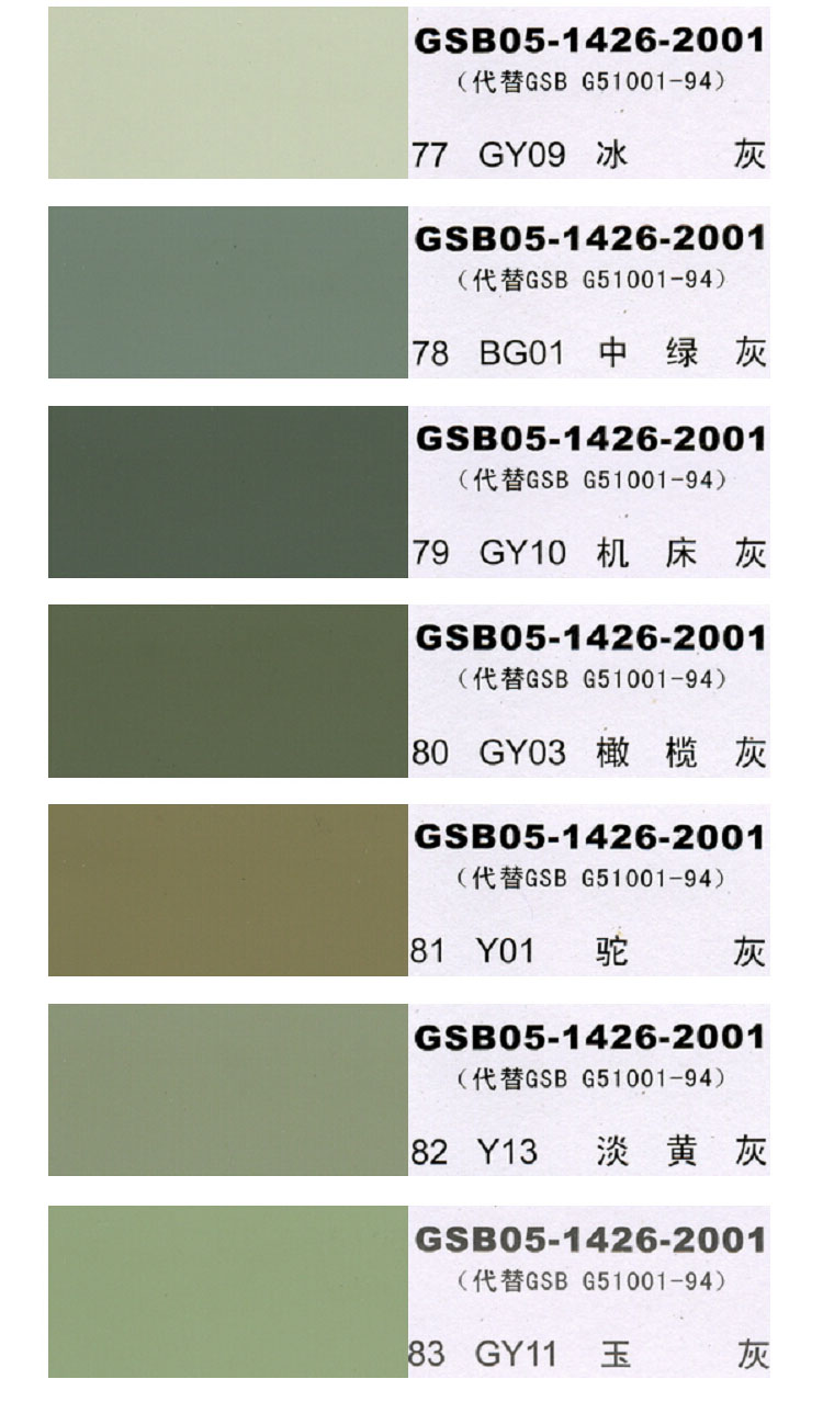 1、本國標色卡(GSB05-1426-2001)可能會因顯示器的問題,給出的顏色色相與實際防腐漆色相比可能會有差異,請客戶理解!